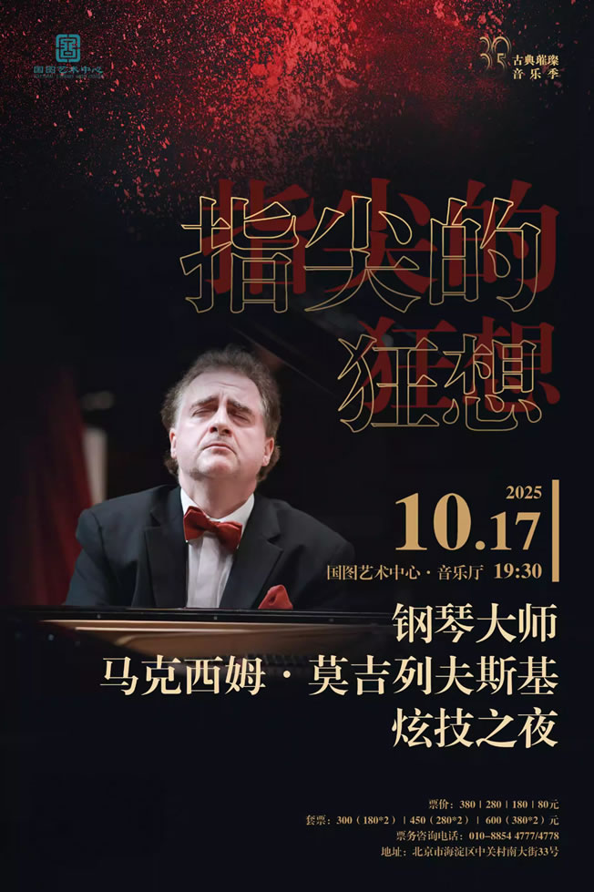 從莫斯科到紐約,從巴黎到東京,馬克西姆的琴聲所到之處皆掀起熱潮。2025.10.17 19:30國圖藝術(shù)中心·音樂(lè )廳誠意呈獻這場(chǎng) “傳承與創(chuàng )新” 交織的鋼琴盛宴。無(wú)論你是古典樂(lè )迷,還是渴望感受藝術(shù)魅力的聆聽(tīng)者,這場(chǎng)演出都將為你開(kāi)啟一扇通往音樂(lè )靈魂深處的大門(mén) —— 讓我們共赴現場(chǎng),見(jiàn)證經(jīng)典在當代的重生,聆聽(tīng)鋼琴詩(shī)人的心靈絮語(yǔ)。