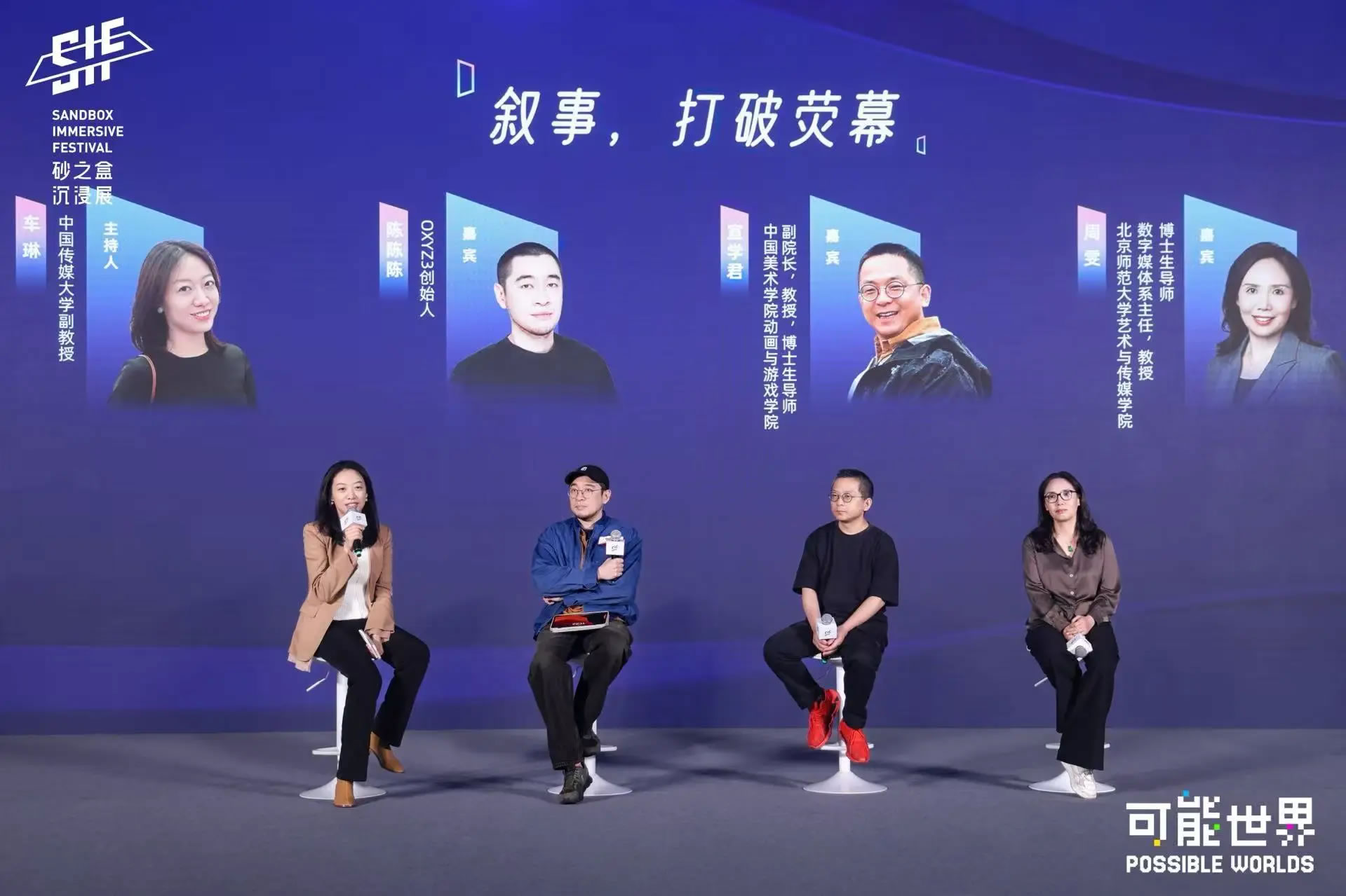 在上午的圓桌對話(huà)環(huán)節,中國傳媒大學(xué)副教授車(chē)琳作為主持人,與OXYZ3創(chuàng )始人陳陳陳,中國美術(shù)學(xué)院動(dòng)畫(huà)與游戲學(xué)院副院長(cháng)、教授、博士生導師宣學(xué)君,北京師范大學(xué)藝術(shù)與傳媒學(xué)院數字媒體系主任,教授,博士生導師周雯三位嘉賓,以“敘事,打破熒幕”為題,從媒介的演變歷程切入,探討了新媒介形態(tài)下敘事方式的演變。