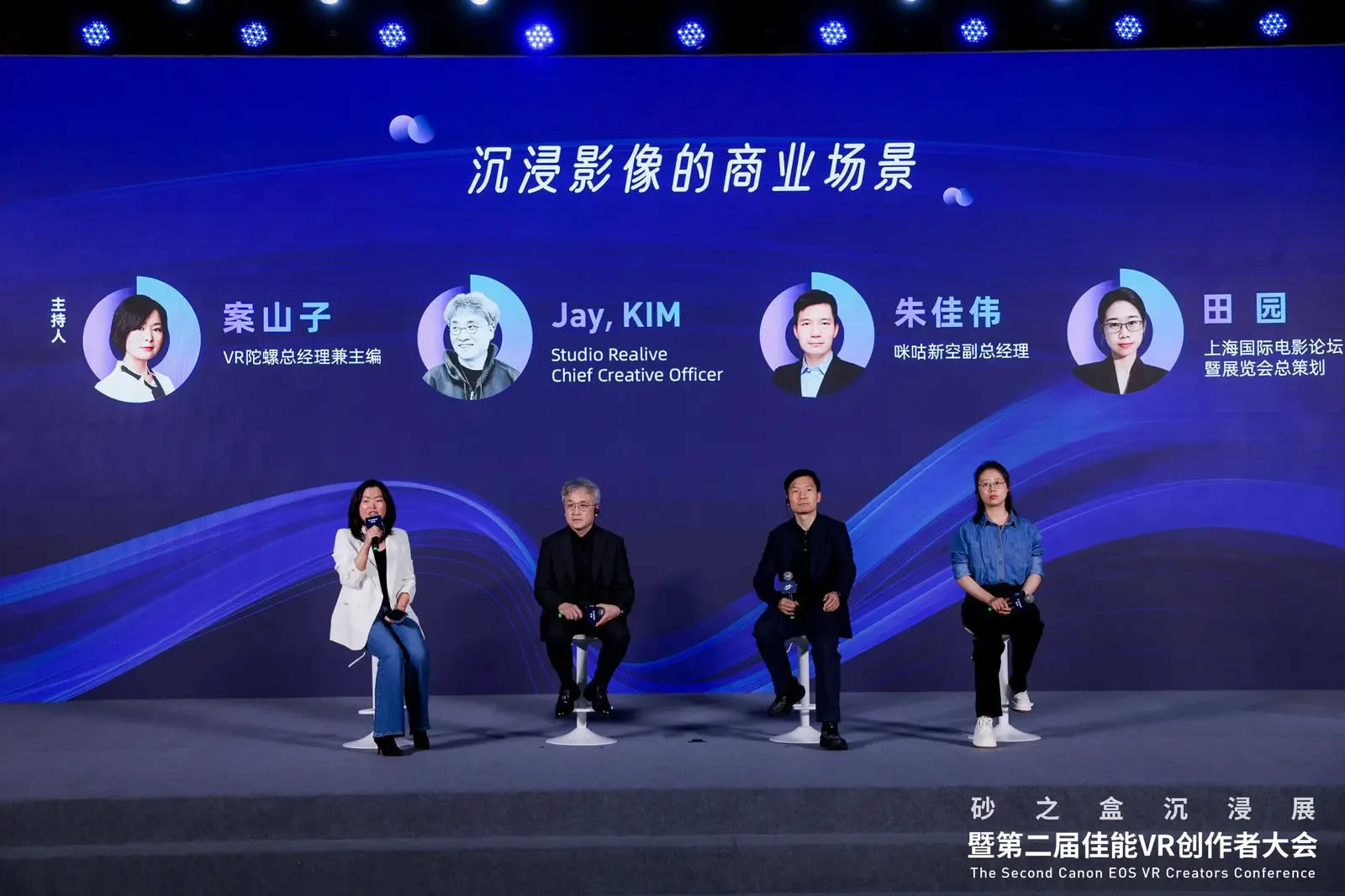 在第二屆佳能 VR 創(chuàng )作者大會(huì )最后的多人圓桌對話(huà)環(huán)節,主持人VR陀螺總經(jīng)理兼主編案山子與Studio Realive Chief Creative Officer Jay, KIM ,咪咕新空副總經(jīng)理朱佳偉,上海國際電影論壇暨展覽會(huì )總策劃田園三位嘉賓,圍繞「沉浸影像的商業(yè)場(chǎng)景」進(jìn)行了精彩的討論。