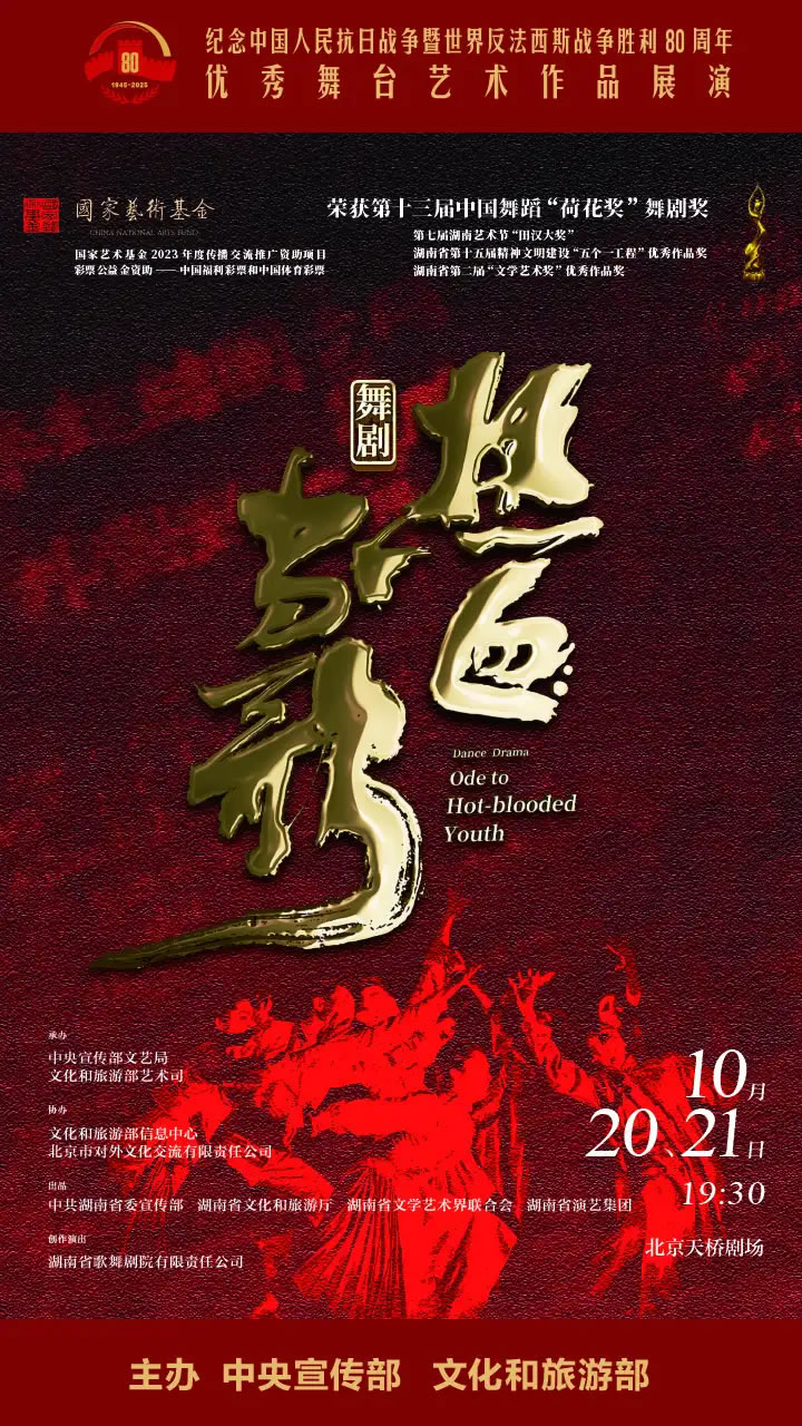 由中共湖南省委宣傳部、省文化和旅游廳推送的舞劇《熱血當歌》(我省唯一一臺入圍作品,也是此次展演唯一一臺民族舞。┏晒θ脒x,將在北京天橋劇場(chǎng)上演。
