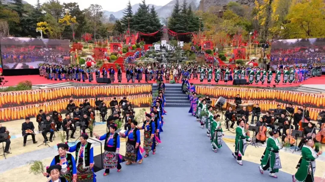 上午的核心展演“羌韻華章·古羌文明遇見(jiàn)交響詩(shī)篇”,成為整場(chǎng)活動(dòng)的亮點(diǎn)。釋比古音與交響樂(lè )碰撞交融的《天神·地人·和鳴》,以“融古韻·啟新聲”為核心,打造出跨越時(shí)空的沉浸式視聽(tīng)體驗。從羌笛悠揚的古老意境到史詩(shī)篇章的雄渾敘事,從羌族女子群舞《仟仟羊角花》的柔美靈動(dòng)到男子群舞《古羌踏歌》的剛勁有力,傳統與現代藝術(shù)完美融合,生動(dòng)演繹了古羌文明與時(shí)代精神的對話(huà)。專(zhuān)業(yè)模特身著(zhù)“爾瑪的嫁衣”這一民族創(chuàng )新品牌帶來(lái)的服飾秀,更將羌族刺繡的精湛工藝與現代時(shí)尚美學(xué)相結合,讓千年羌裳在舞臺上煥發(fā)新生。