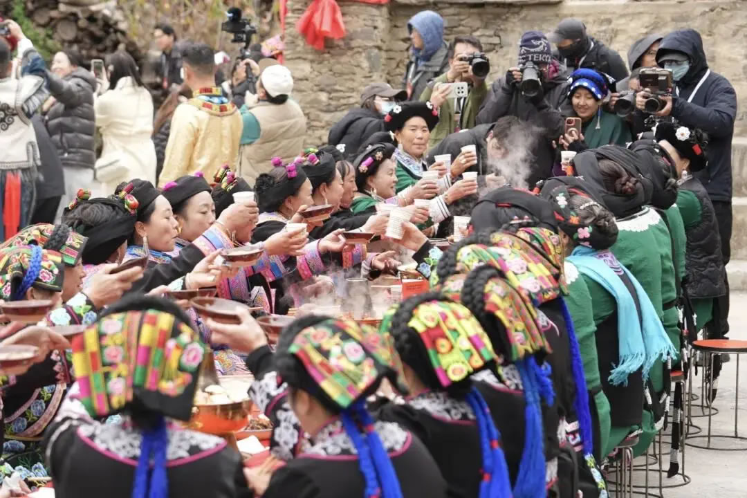 正午時(shí)分,香氣四溢的壩壩宴如期開(kāi)席。甘醇的咂酒、地道的羌家美食,讓游客們在品嘗特色風(fēng)味的同時(shí),感受著(zhù)理縣人民的熱情與煙火氣息。值得一提的是,全天開(kāi)放的羌年吉市(鄉村市集)人氣高漲。特色手工藝品、優(yōu)質(zhì)農特產(chǎn)品琳瑯滿(mǎn)目,游客與村民穿梭其間,在買(mǎi)買(mǎi)逛逛中沉浸式體驗羌族民俗文化,感受鄉村振興帶來(lái)的豐碩成果。