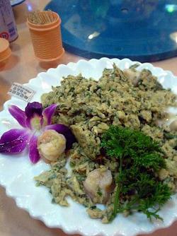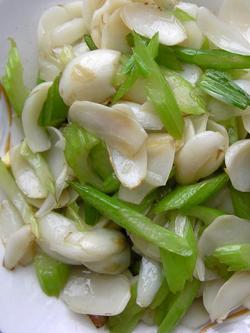 西芹百合是女人們最?lèi)?ài)的菜之一,常?戳税胩觳,最后還是點(diǎn)了這道菜。做法也很簡(jiǎn)單,把百合一瓣瓣掰下洗凈,和切了段的西芹一起放入油燒至七分熱的鍋中略炒,加點(diǎn)鹽調味就可以了。西芹脆,百合酥,略帶點(diǎn)苦味,清涼爽口,南方人通常這么吃。內蒙古人還會(huì )加上煮好的羊眼,俗稱(chēng)“千里”,既起點(diǎn)裝飾效果,據說(shuō)還有明目的功效。
