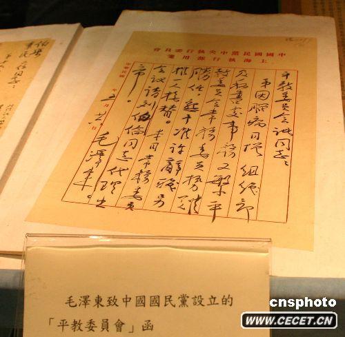 中新社臺北六月二十七日電 題 臺北寫(xiě)真:國民黨黨史館將以毛澤東、周恩來(lái)手跡迎陸客
