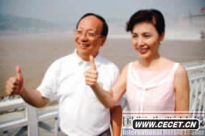 圖為2005年7月2日,蔣孝嚴攜夫人黃美倫參觀(guān)三峽大壩,登上壇子嶺、大壩泄洪區后對鏡頭豎起了大拇指。
