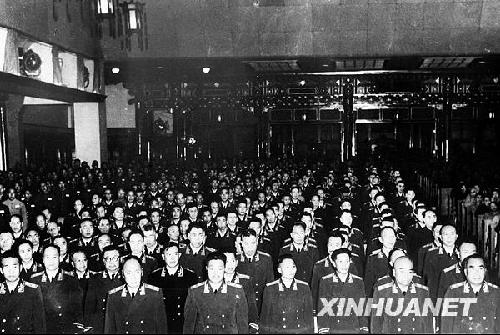 1955年9月27日下午,中國人民解放軍在北京舉行隆重的授予元帥軍銜及勛章典禮大會(huì )。此次授銜,共計元帥10名、大將10名、上將55名、中將175名、少將802名、校級軍官3.2萬(wàn)名、尉級軍官49.8萬(wàn)名、準尉11.3萬(wàn)名。