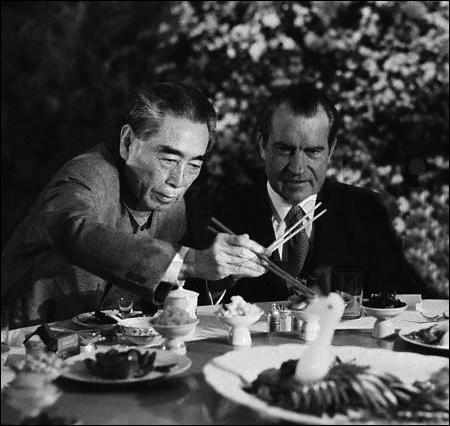 1972年,美國總統尼克松訪(fǎng)問(wèn)中國,在送別晚宴上,尼克松正試著(zhù)握筷子時(shí),周恩來(lái)總理來(lái)到他的面前