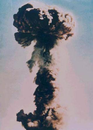 資料圖:1964年10月16日中國的第一顆原子彈成功爆炸騰起的蘑菇云