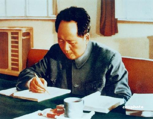 資料圖:毛澤東主席審閱《毛澤東選集》第四卷。 中新社發(fā)