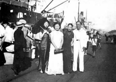 在青島監視汪精衛、孫科時(shí)留影。當年戴笠親自執筆,寫(xiě)下三份蘭譜,名影星許鶯鶯(左三)、戴笠、陳華(左二)結為兄妹