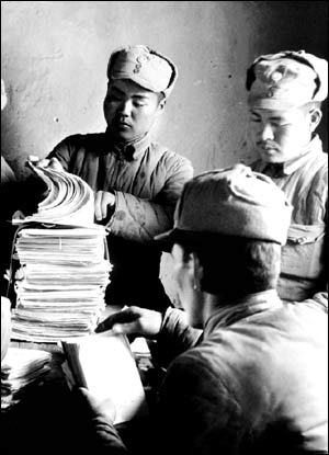 在華日本人反戰同盟成員正在編發(fā)反戰宣傳品 新華網(wǎng)