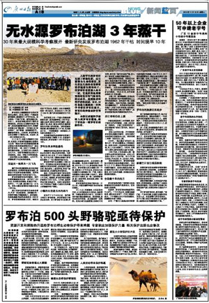 本文摘自《廣州日報》2010年11月10日AII8版,作者:何濤 陳安,原題:《羅布泊的新傳奇》