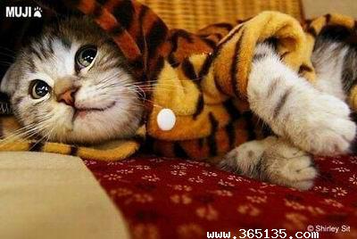 水瓶座貓貓最喜歡搞搞新意思,鉆到紅色毛線(xiàn)里的它還不忘擺個(gè)最酷的POSS。