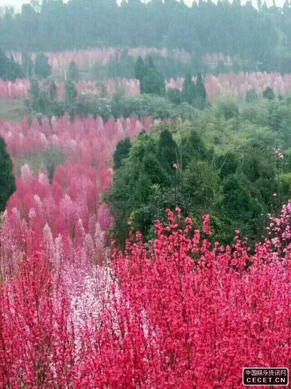 煙嵐籠罩下的桃林,如霞似錦,絢爛無(wú)匹