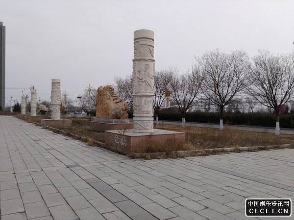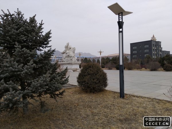 小 廣場(chǎng)中央驅馬前行的成吉思汗雕像