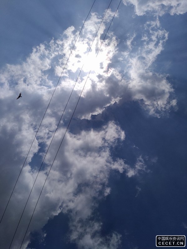 仰望長(cháng)空,蔚藍晴空下,飛鳥(niǎo)在白云的掩映下自在滑翔。