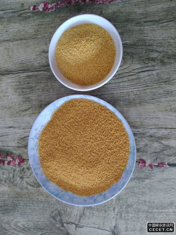 清水河的小米,六元一斤,盤(pán)內的是清水河的小米,小碗內是在超市買(mǎi)的小米,清水河的小米略透著(zhù)一點(diǎn)紅,也較一般小米更黃。