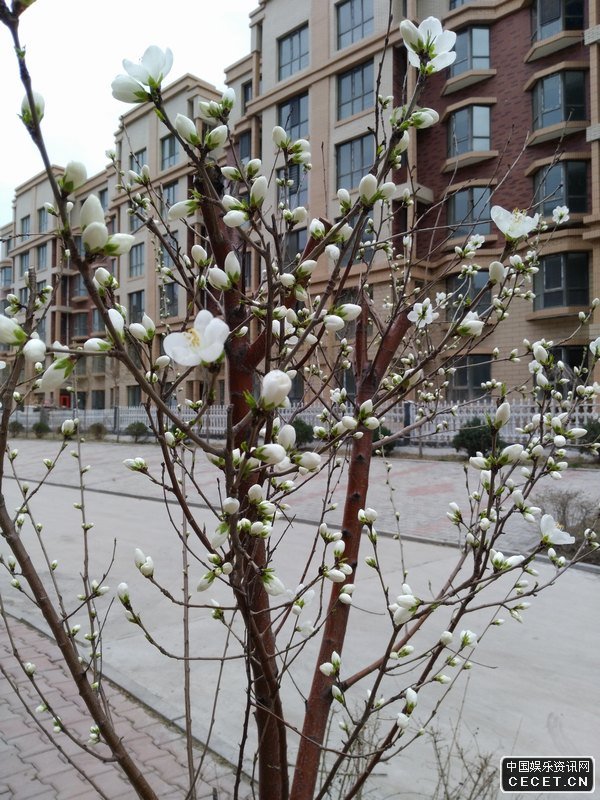 半個(gè)月前,這棵小樹(shù)上還掛著(zhù)雪,半個(gè)月后,它已花滿(mǎn)枝頭