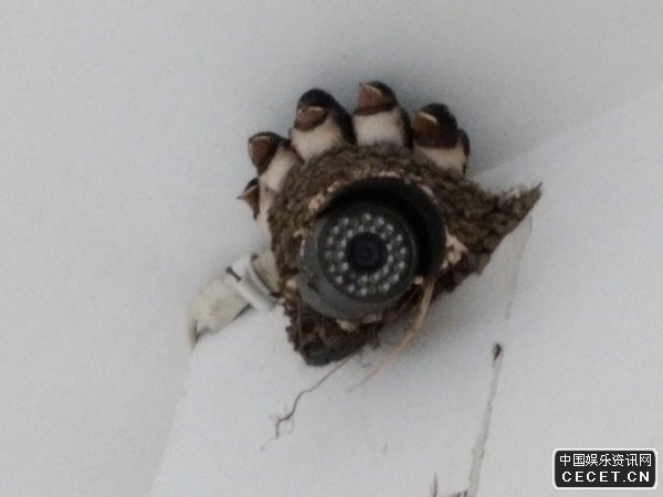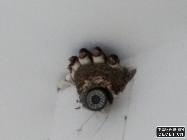 南國春天,房檐下,燕兒在一個(gè)監控頭上筑起了窩巢,在這里安家落戶(hù),生兒育女。