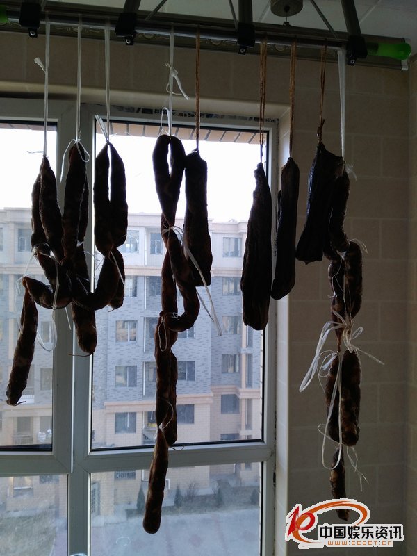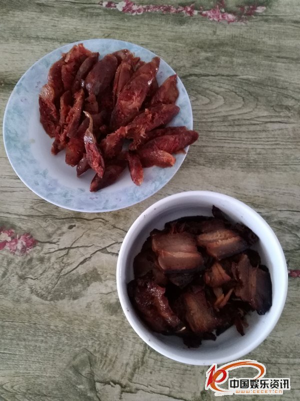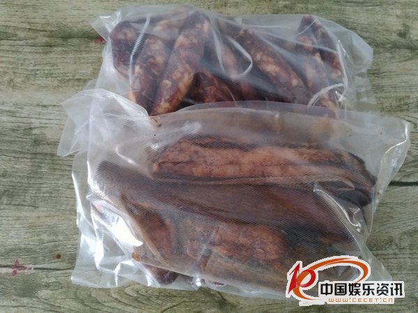 同學(xué)從四川寄來(lái)兩袋鄉村特制臘肉與臘腸。