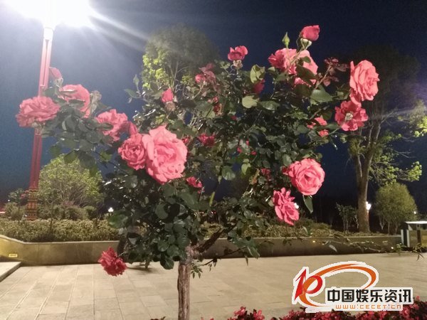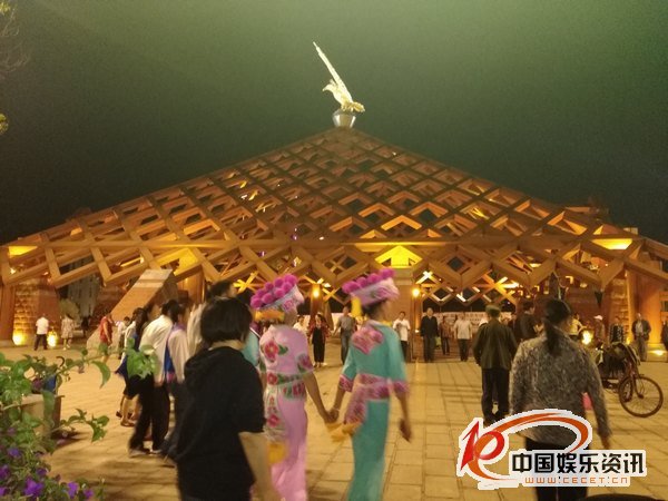 夜色下,中國彝族十月太陽(yáng)歷文化園中,依然有無(wú)數游人往來(lái)。