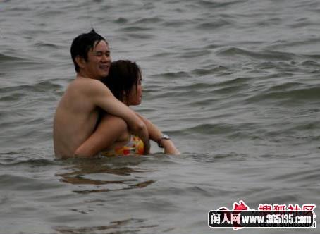 情侶海濱鴛鴦戲水 親密過(guò)頭不顧游人