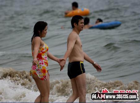 情侶海濱鴛鴦戲水 親密過(guò)頭不顧游人
