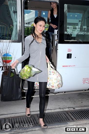 香港小姐開(kāi)賽 眾佳麗素衣拎大袋趕往面試