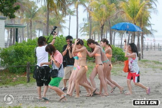 候選港姐穿泳衣出奇招搶鏡 遇大雨狼狽逃跑