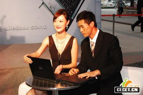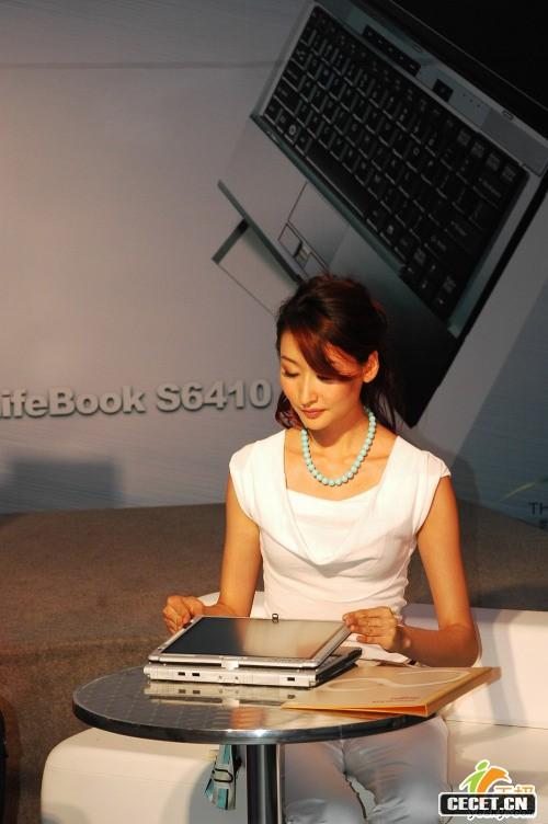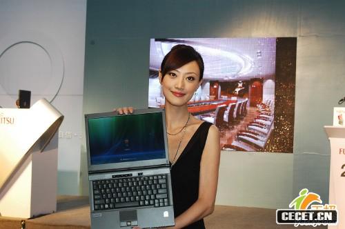 氣質(zhì)美女模特展示昂貴的商務(wù)筆記本