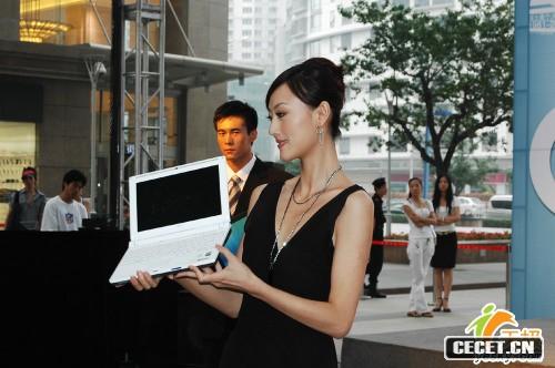 氣質(zhì)美女模特展示昂貴的商務(wù)筆記本