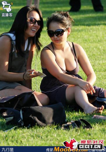 公園草地上兩個(gè)低胸美女的大膽舉動(dòng)