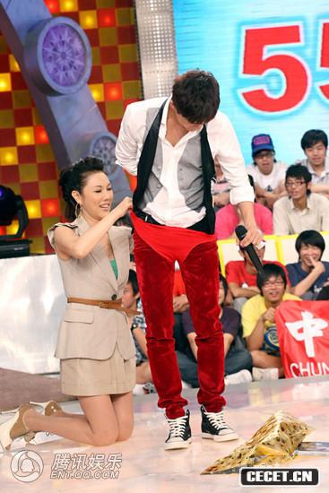 節目現場(chǎng)遇尷尬 美女跪地幫吳克群穿內褲