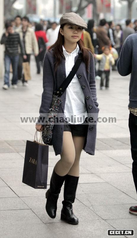 街拍冬季杭州街頭 MM真不怕冷