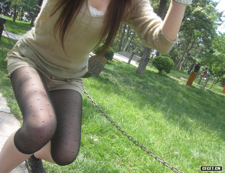 公園照相的絲襪美女