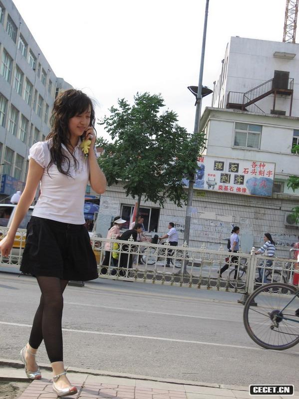 邊走邊打電話(huà)的開(kāi)心女孩