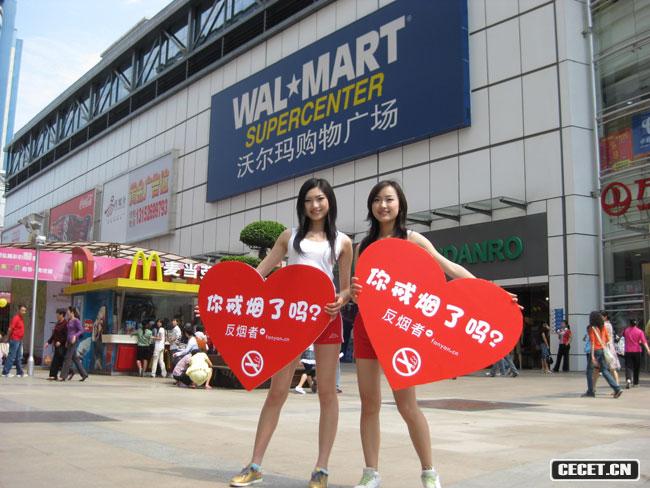 美女大學(xué)生街頭反煙 提醒煙民及時(shí)戒煙