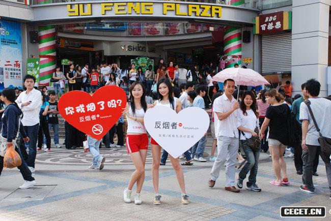美女大學(xué)生街頭反煙 提醒煙民及時(shí)戒煙
