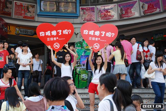 美女大學(xué)生街頭反煙 提醒煙民及時(shí)戒煙