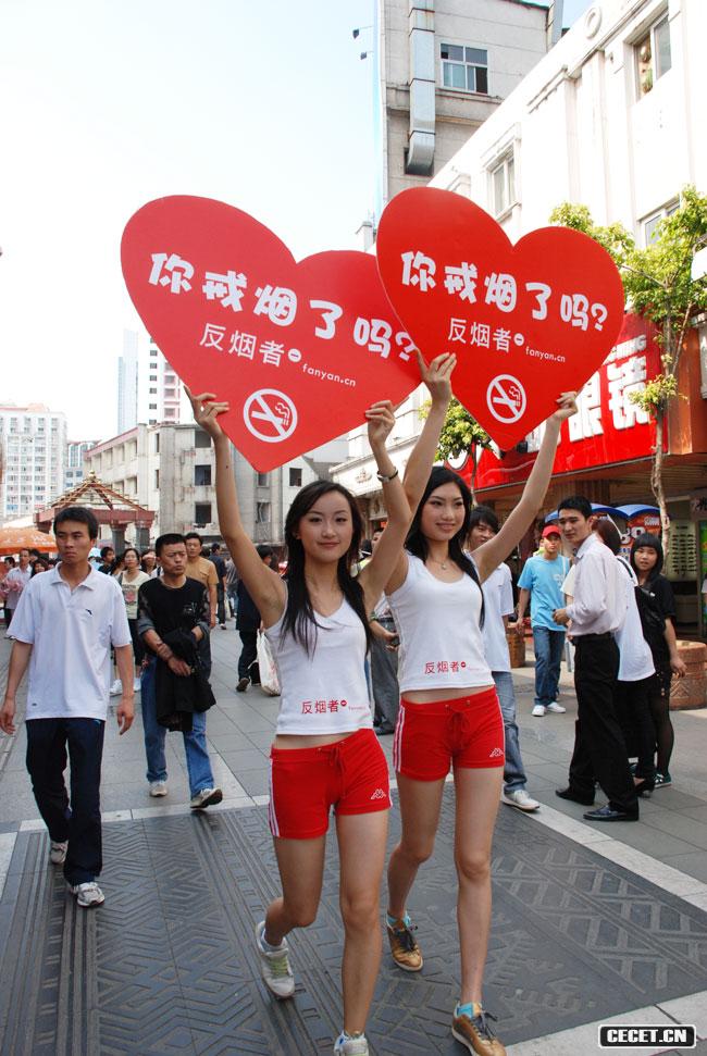 美女大學(xué)生街頭反煙 提醒煙民及時(shí)戒煙