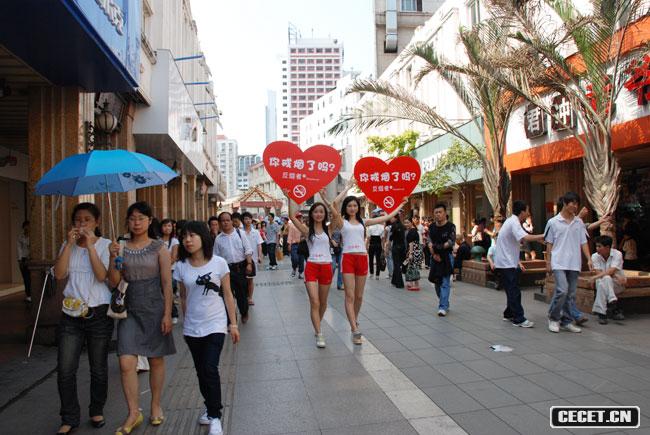 美女大學(xué)生街頭反煙 提醒煙民及時(shí)戒煙