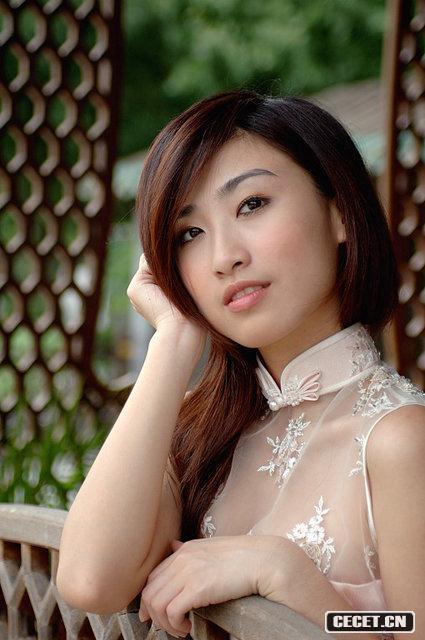 前襟縷空蕾絲旗袍美女