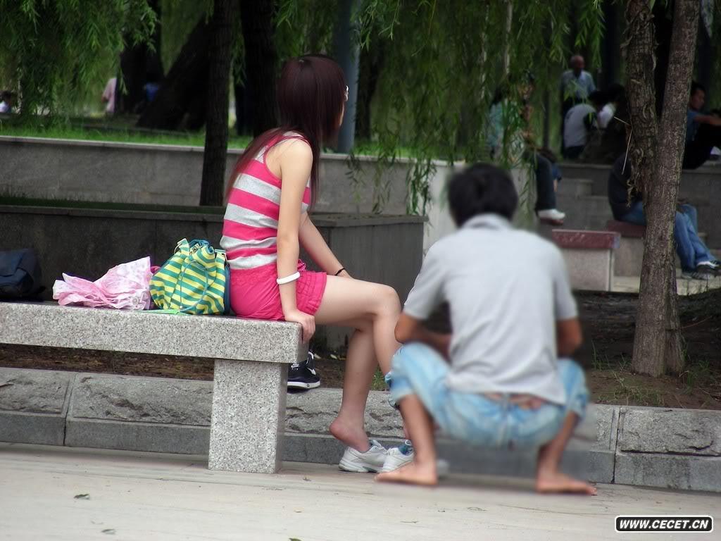 路邊正在穿襪子的MM