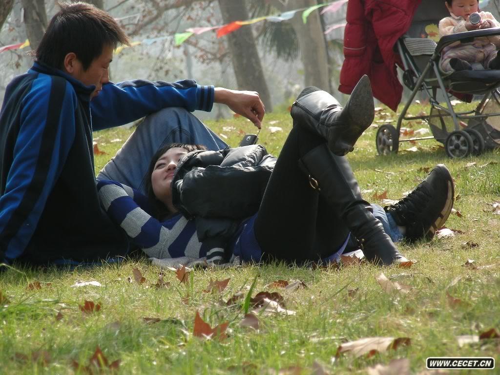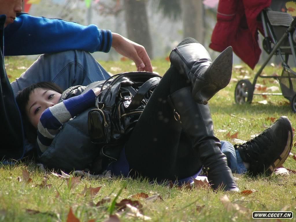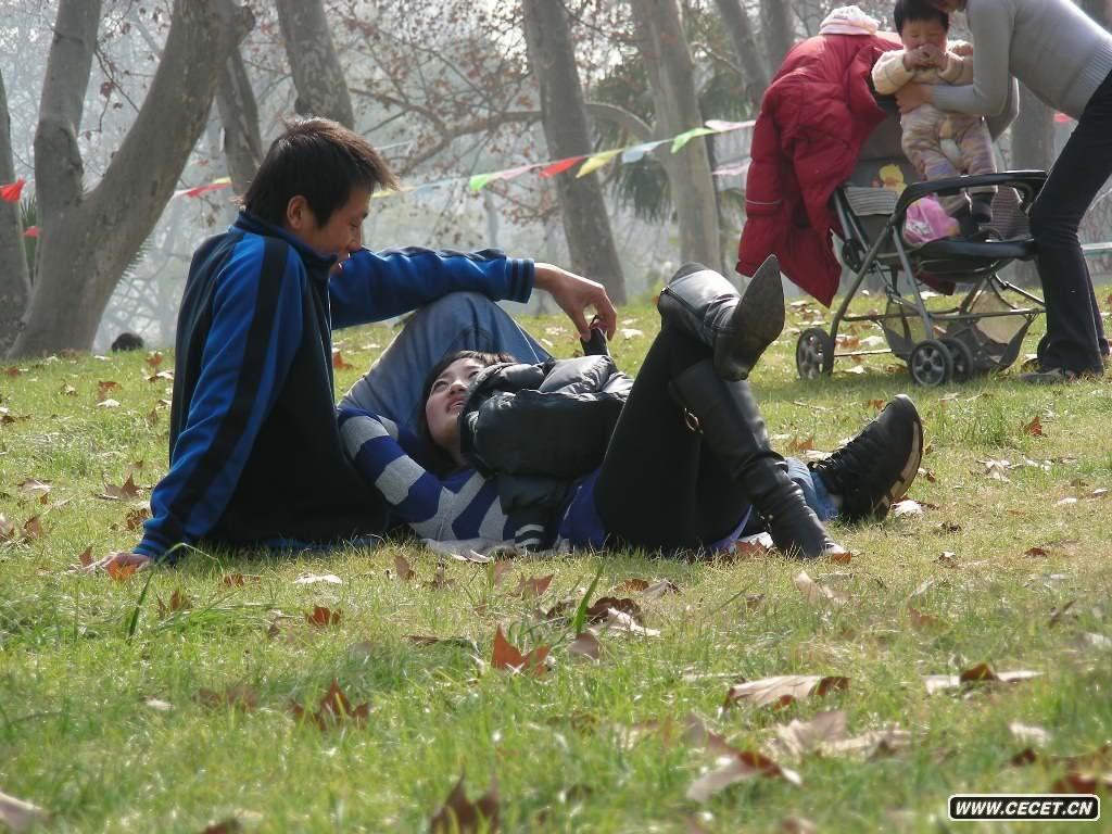 草坪上的一對熱戀情侶