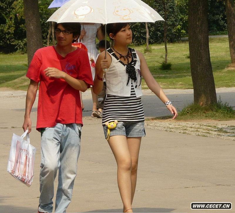 抓拍打傘的美麗MM