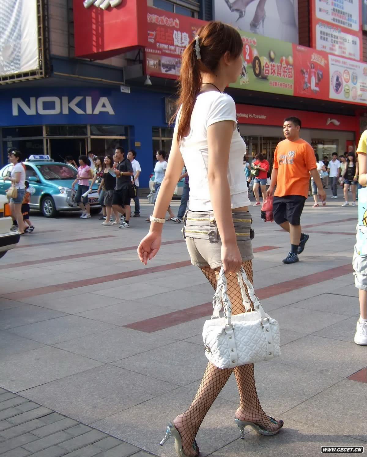 抓拍穿漁網(wǎng)襪的女孩