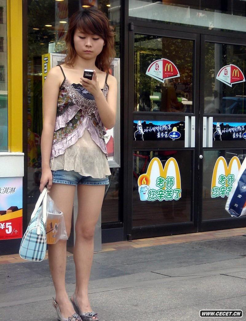 路邊等車(chē)的熱褲女孩