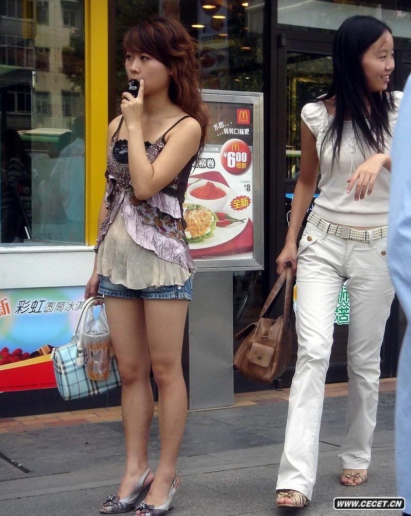 路邊等車(chē)的熱褲女孩