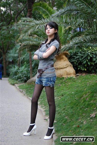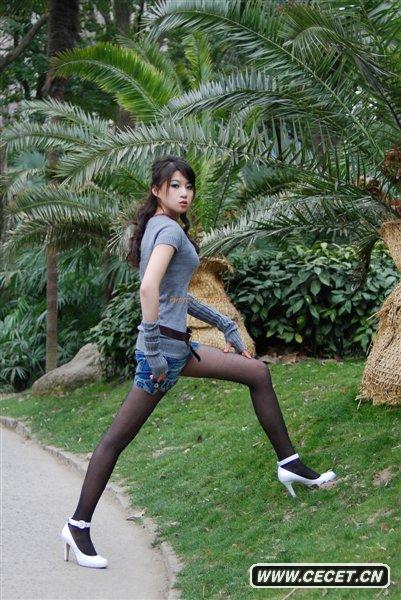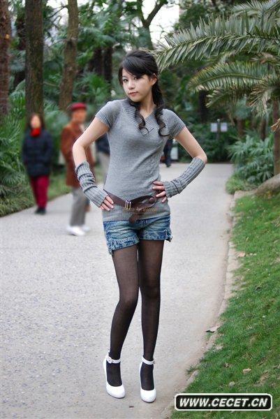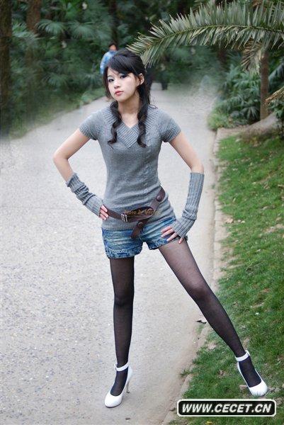 牛仔短褲黑絲美女