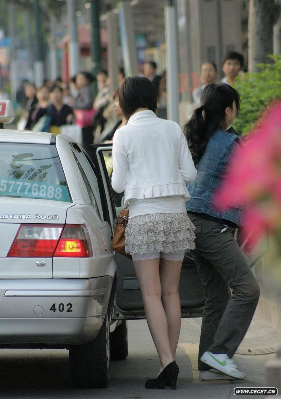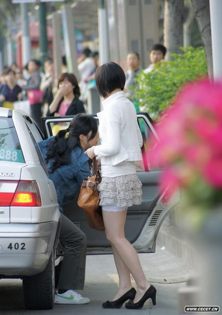 跟拍打車(chē)的白凈女孩
